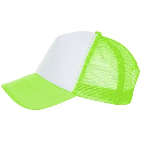 Бейсболка с 5 клиньями из сетки. Поролон в переднем клине (5 мм) и козырьке (3 мм). Регулируемая пластиковая застежка.