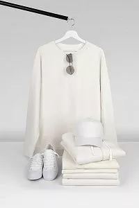 Базовая повседневная одежда актуального покроя в стиле унисекс разработана в рамках единой коллекции и легко собирается в комплекты. Специально спроектированные лекала и технологии пошива открывают простор для любых вариантов кастомизации и нанесения изображений. На изделиях нет лейблов с айдентикой бренда — но предусмотрены петельки для навешивания индивидуальных этикеток.