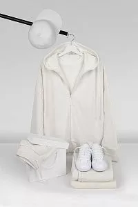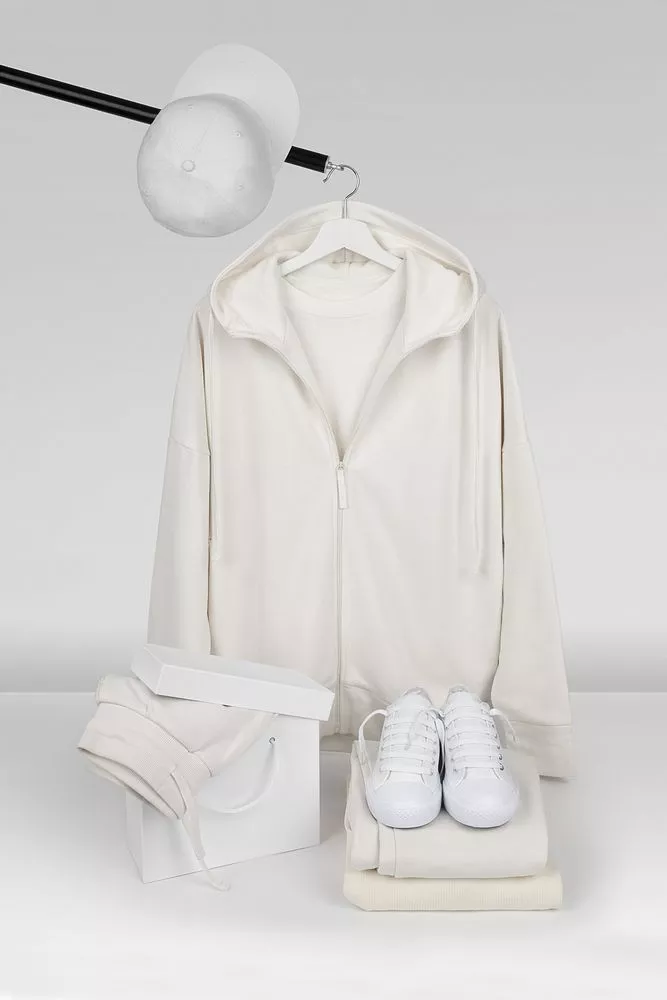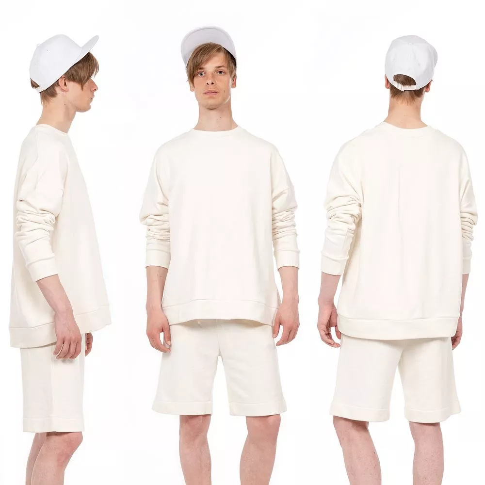 Базовая повседневная одежда актуального покроя в стиле унисекс разработана в рамках единой коллекции и легко собирается в комплекты. Специально спроектированные лекала и технологии пошива открывают простор для любых вариантов кастомизации и нанесения изображений. На изделиях нет лейблов с айдентикой бренда — но предусмотрены петельки для навешивания индивидуальных этикеток.