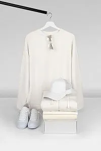 Базовая повседневная одежда актуального покроя в стиле унисекс разработана в рамках единой коллекции и легко собирается в комплекты. Специально спроектированные лекала и технологии пошива открывают простор для любых вариантов кастомизации и нанесения изображений. На изделиях нет лейблов с айдентикой бренда — но предусмотрены петельки для навешивания индивидуальных этикеток.