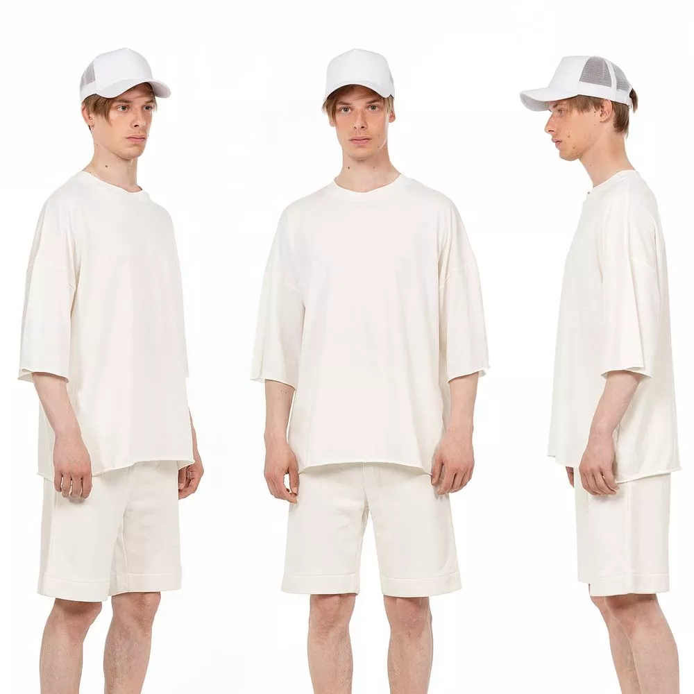 Базовая повседневная одежда актуального покроя в стиле унисекс разработана в рамках единой коллекции и легко собирается в комплекты. Специально спроектированные лекала и технологии пошива открывают простор для любых вариантов кастомизации и нанесения изображений. На изделиях нет лейблов с айдентикой бренда — но предусмотрены петельки для навешивания индивидуальных этикеток.