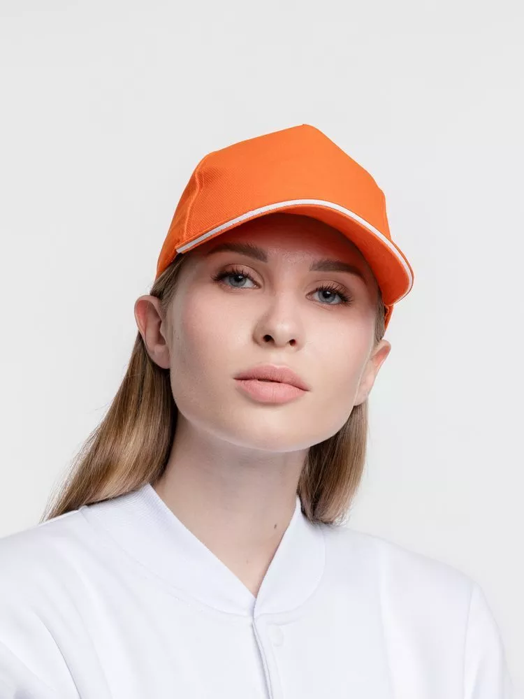 Популярная модель с 5 клиньями без лобового шва выполнена из плотного хлопка. Козырек-сэндвич с контрастной вставкой. Регулируемая металлическая застежка и вентиляционные отверстия с люверсами обеспечивают оптимальную посадку и комфорт в носке.