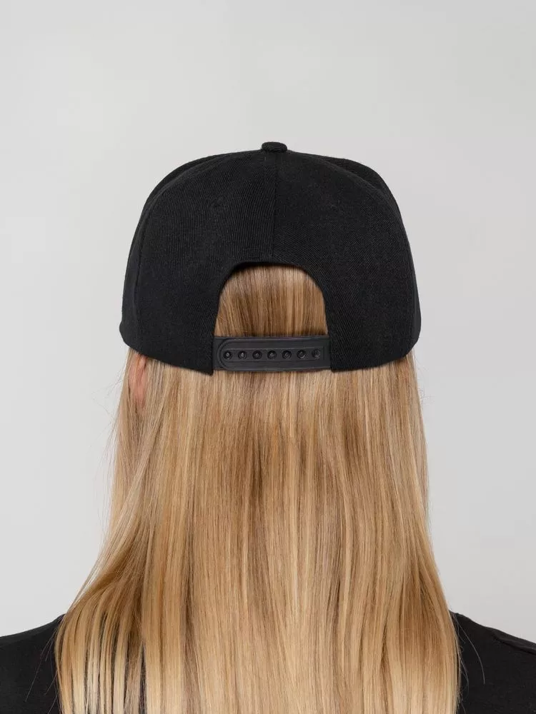 Бейсболка с широким прямым козырьком из плотного фактурного акрила отлично держит форму и не выцветает. Модель с шестью клиньями со швом на лбу и обшивными люверсами. Размер регулируется с помощью пластиковой застежки.