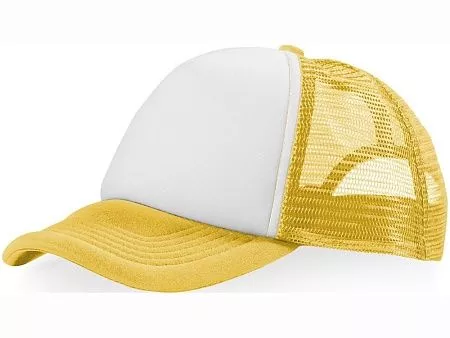 Кепка из 5 панелей Trucker. Оригинальная кепка на окружность головы 58 см с передней поролоновой частью, пластиковой сеткой сзади и пластиковой застежкой. Эта кепка полностью соответствует требованиям к соединениям AZO, формальдегиду и ПХФ. Полиэстер и поролон.