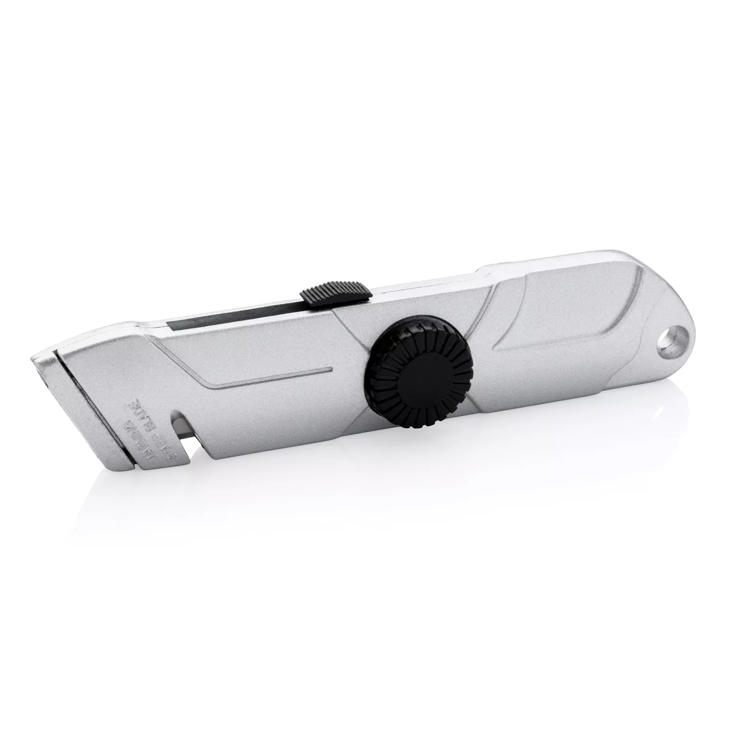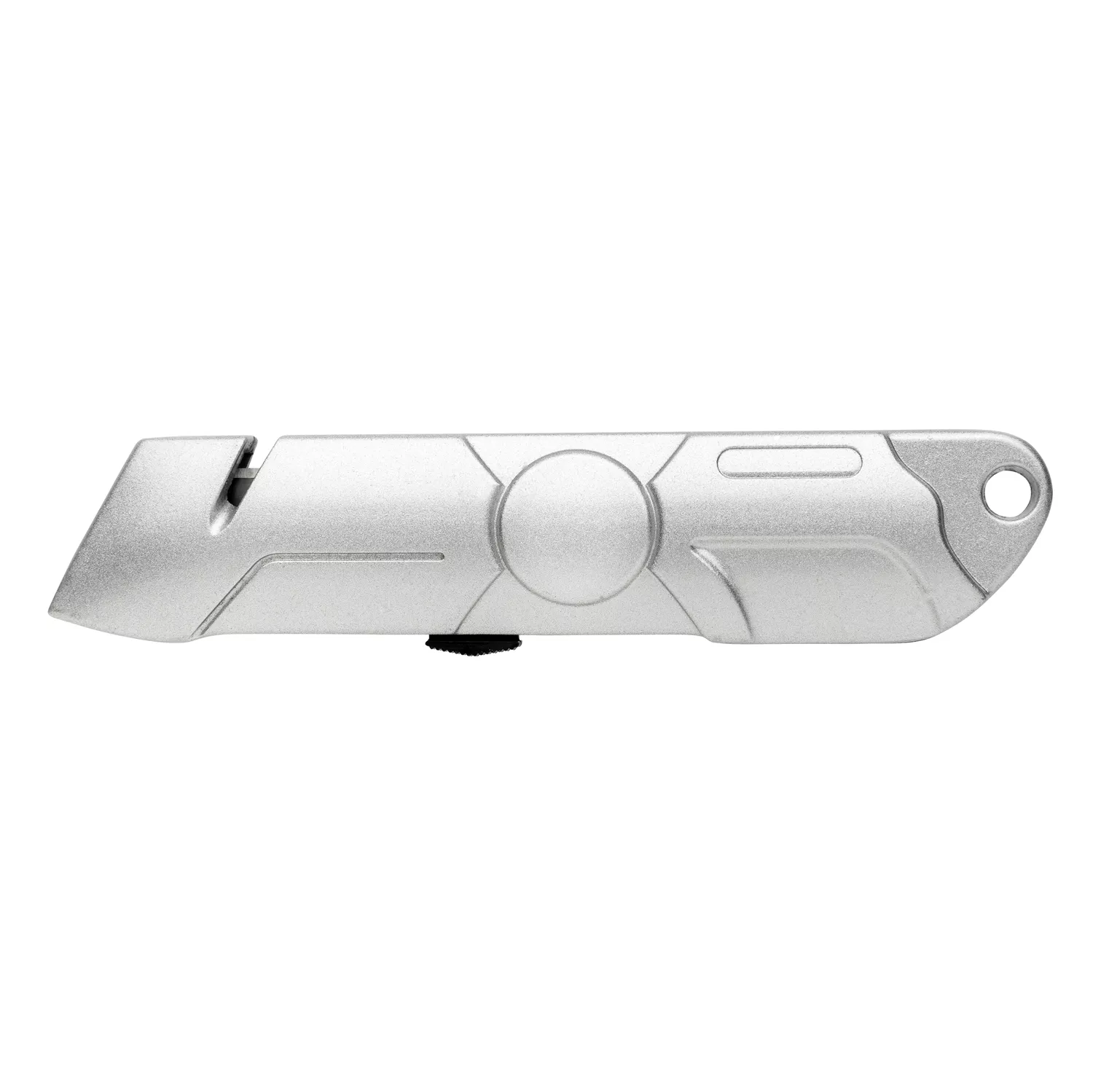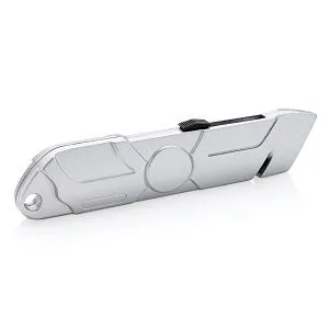 Надежный строительный нож из цинкового сплава. Лезвие выдвигается при помощи специальной кнопки, чтобы резак оставался безопасным, пока вы его не используете. Дополнительное сменное лезвие 11-921 находится внутри корпуса. Лезвия из нержавеющей стали.