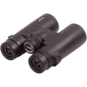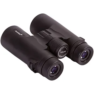 Бинокль создан на базе roof-призм и линз, сделанных из стекла BK-7. На линзы нанесено полное просветляющее покрытие — оно улучшает светопропускание и повышает качество картинки. У правого окуляра есть диоптрийная коррекция — с помощью специального кольца можно отрегулировать резкость в зависимости от особенностей зрения наблюдателя. Для фокусировки используется барабан, расположенный в центре корпуса. У окуляров увеличенный вынос зрачка и удобные поворотно-выдвижные наглазники, положение которых легко регулировать.