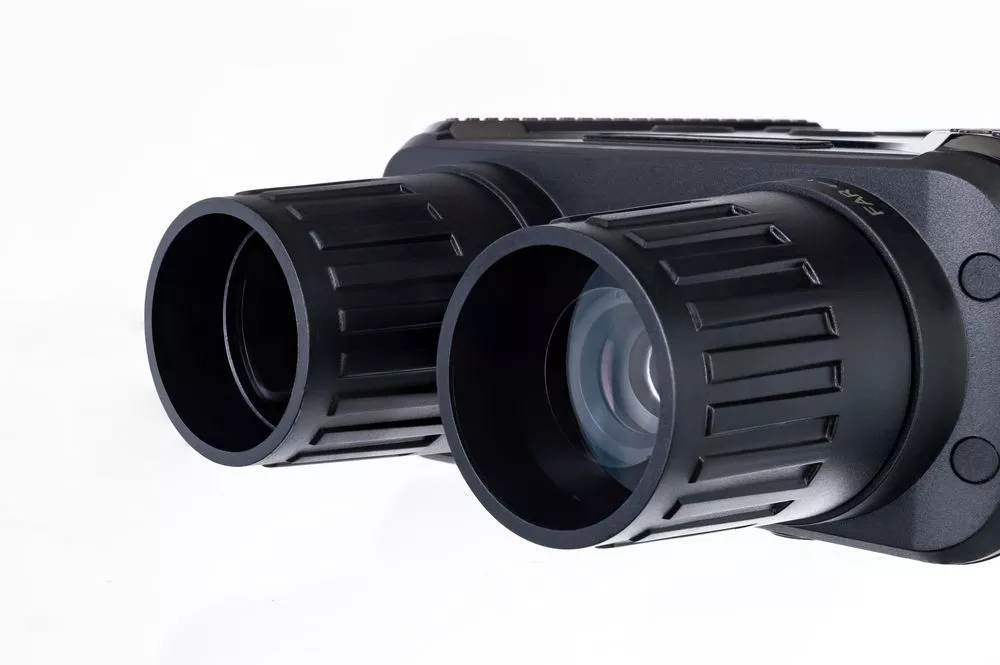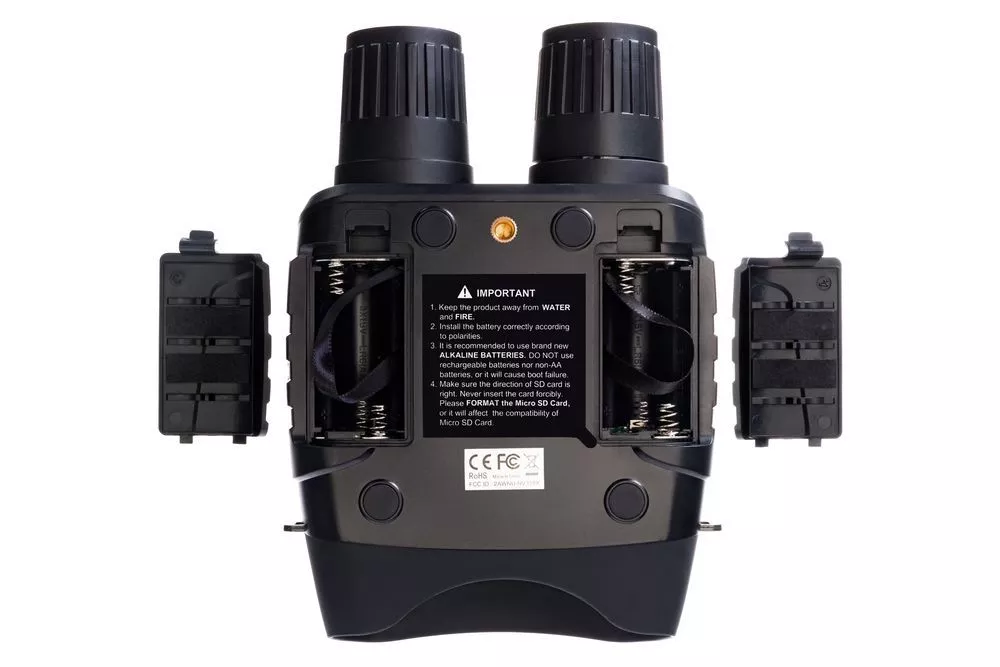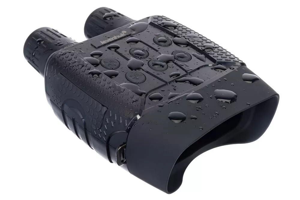 Корпус бинокля имеет эргономичную форму, поэтому удобно ложится в руку. Прибор также не боится брызг воды. Для управления используются всего шесть кнопок, поэтому работать с биноклем очень легко — все нужное находится под рукой. Одного комплекта батареек хватает на 4–10 часов непрерывной работы (длительность работы зависит от интенсивности использования ИК-подсветки).Бинокль с функцией прибора ночного видения. В комплект входит чехол из полиэстера.