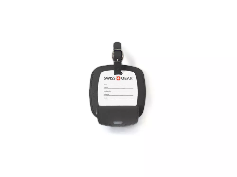 Черная бирка для багажа SWISSGEAR размером 10,5 x 0,4 x 10,5 см., изготовленная из ПВХ, позволит сэкономить время при поиске багажа в случае его утери!
