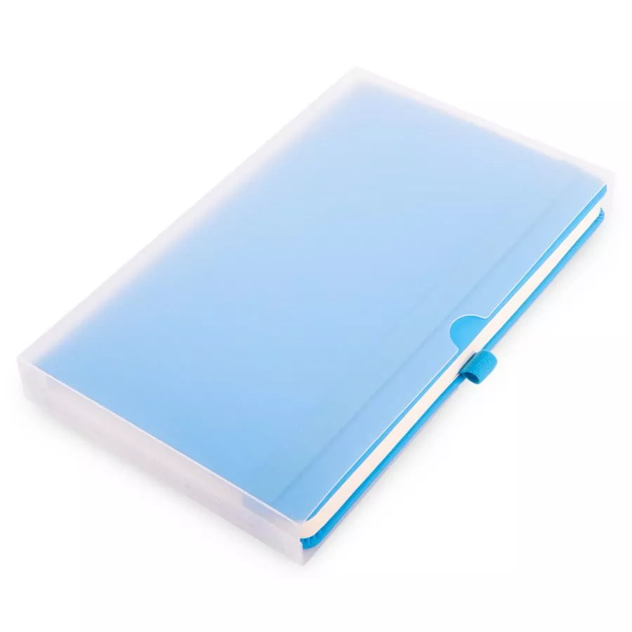 Самый популярный блокнот в твердой обложке, с эластичной резинкой, пенхолдером и ляссе в тон.Термоактивный классический PU материал Silk PlusЦвет обложки, близкий к Pantone nbsp;7688CВнутренний блок 256 страниц в линейкуИдеально скругленные углы блокаПерфорированные 8 последних листовКремовая FSC бумага 70г м2Карман для мелочейИндивидуальная упаковка: фирменный сливбокс thINKme