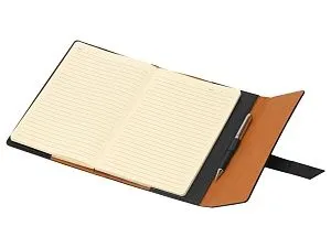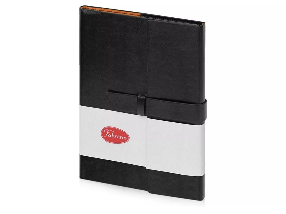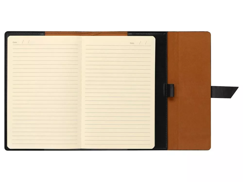 Бизнес-блокнот формата А5 в твердой обложке из искусственной кожи станет отличным подарком для любого клиента. Блокнот состоит из обложки с клапаном и сменного блока с линованными страницами. Внутри обложки есть петля для ручки в тон (ручка в комплект не входит). Тиснение (Фольга) на данный товар осуществляется бесплатно. Оплачивается только настройка оборудования в размере 5800 рублей на весь тираж.
