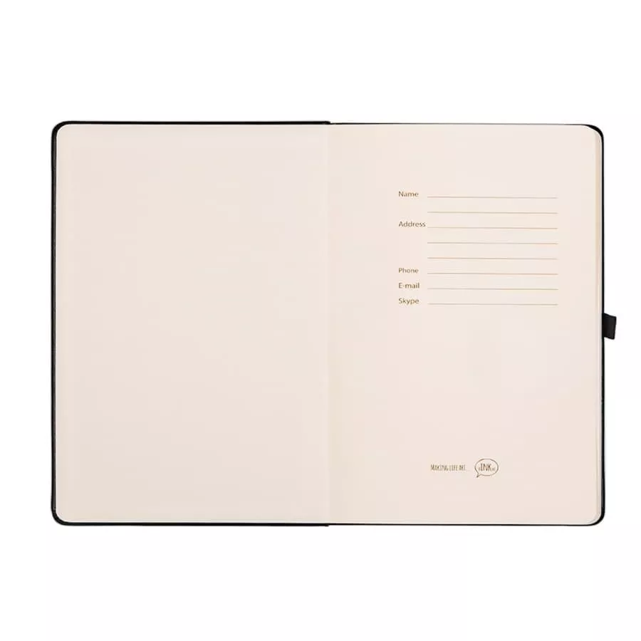 Размер: 130х210 мм Переплет: твердый Обложка: термоактивный PU Sensi, по фактуре и тактильно напоминающий лайковую кожу, невероятно приятный на ощупь Отделка: жаккардовая резинка 12 мм и пенхолдер в тон обложки Форзац нахзац: кремовый Блок: недатированный Разлиновка: в линейку Количество страниц: 256 Углы блока: скругленные Цвет бумаги: кремовый Плотность бумаги: 70г м2 Ляссе: в тон обложке Карман для визиток: есть Упаковка: фирменный сливбокс thINKme