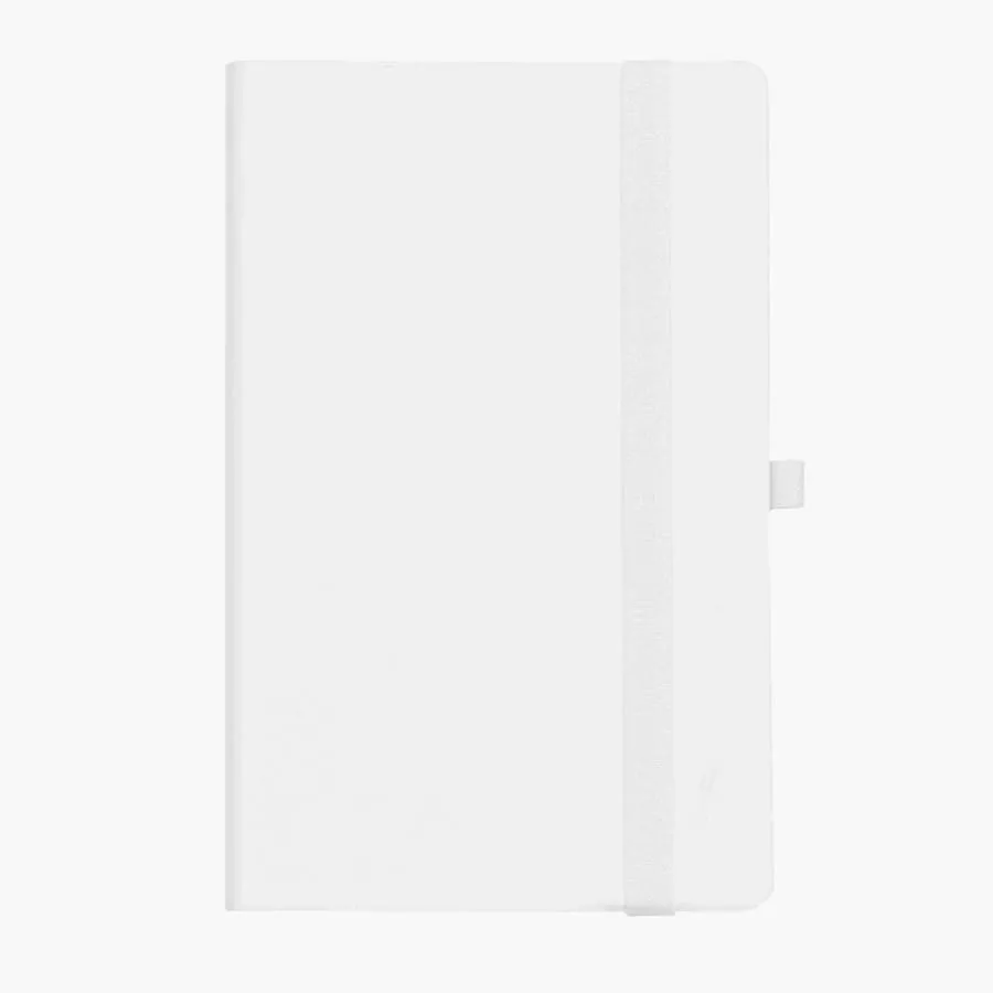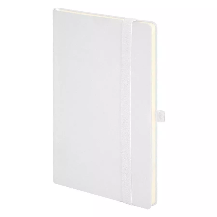 Soft-touch блокнот с покрытием, защищающим от царапин FSC сертификат Мягкая термоактивная обложка PU нового поколения Silk Plus Пантон, близкий к White Кремовая бумага (блок 70 гр, форзац 160 гр) Блок 192 стр. в линейку Перфорация 8 последних листов. Ляссе в тон обложке. Практичные закругленные углы. Надежный прошитый переплет. Упаковка: фирменный слив-бокс