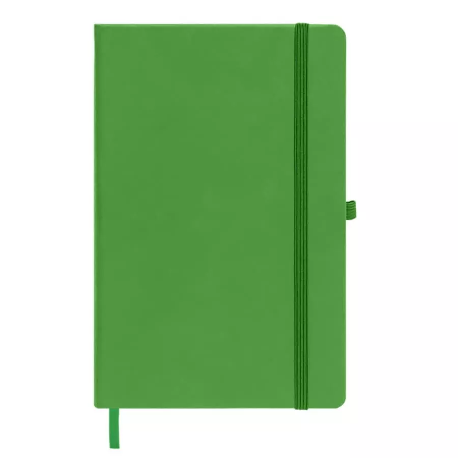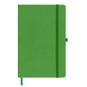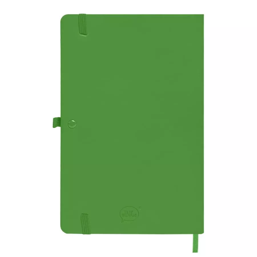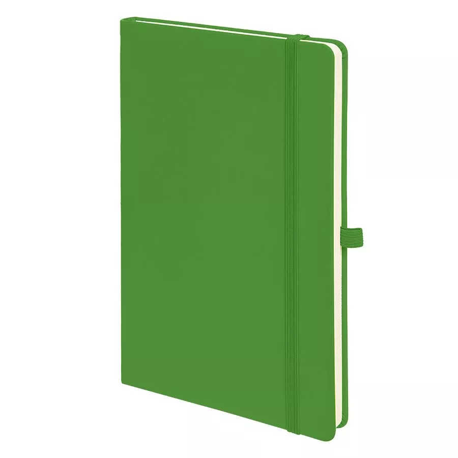 Изысканный блокнот в твердой шелковистой на ощупь обложке, с эластичной резинкой, надежно фиксирующей блок, пенхолдером и закладкой в тон Термоактивный soft-touch PU материал Silk Touch Цвет обложки, близкий к Pantone 355C Внутренний блок 256 страниц в клетку Идеально скругленные углы блока Перфорированные 8 последних листов Кремовая FSC бумага 70 г м2 Карман для визитокИндивидуальная упаковка: прозрачный пластиковый сливбокс