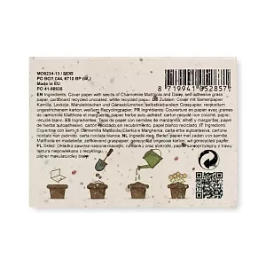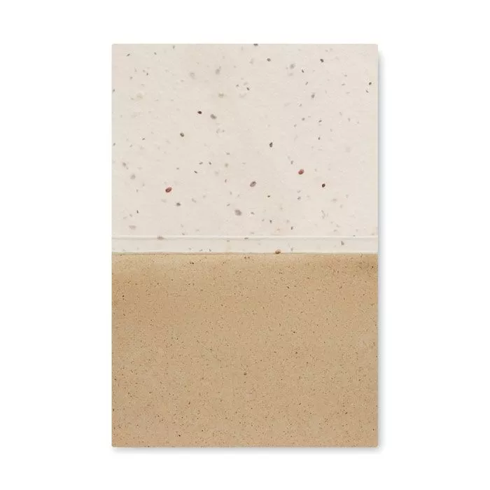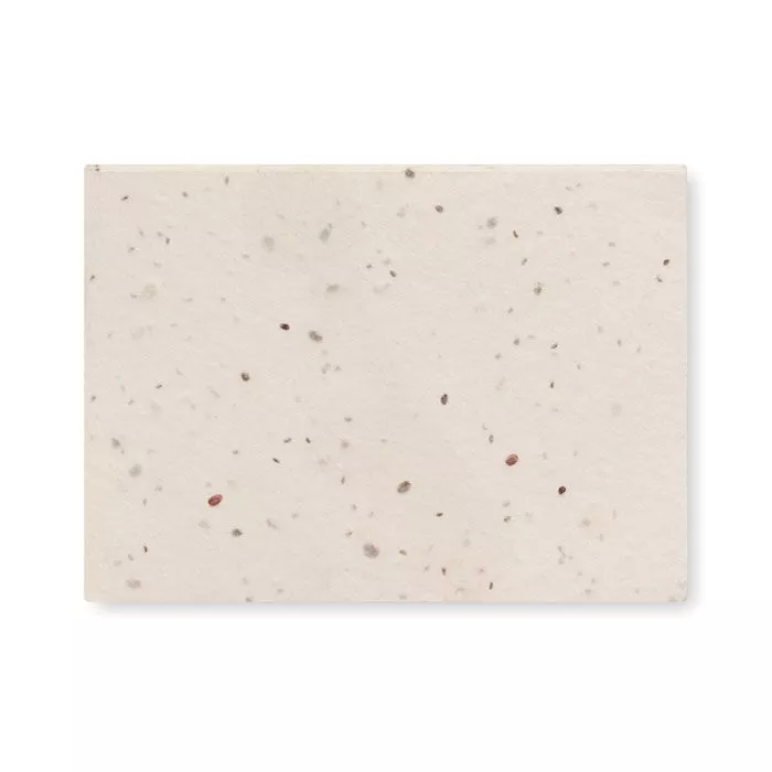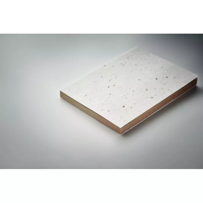 Блок стикеров в мягкой обложке из бумаги, содержащей семена травы. После использования , бумагу можно закопать и взойдут семена луговых полевых цветов.