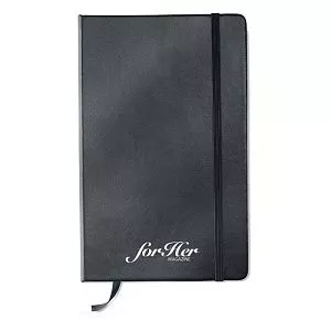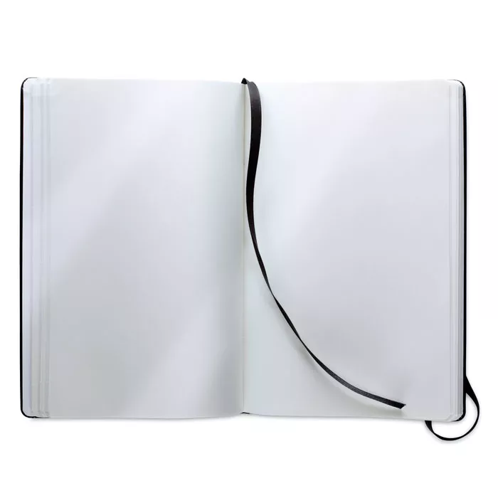 Блокнот формата А5 с ПУ обложкой на 96 нелинованных страниц. Застегивается на резинке.