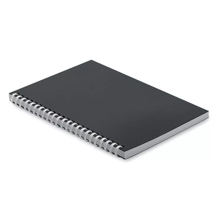 Блокнот A5 в обложке из переработанного картона с кольцевым переплетом. 160 линованных страниц из переработанной бумаги (80 листов).