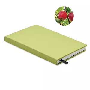 Блокнот формата A5 в обложке из полиуретана в комплекте с пластиковой шариковой ручкой. В переплете. 160 линованных страниц из переработанной бумаги (80 листов).