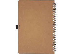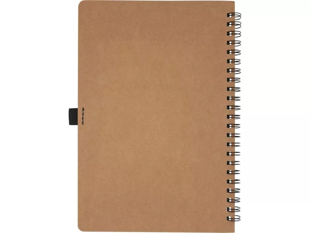 Блокнот на пружине формата A5, изготовленный из переработанного картона, с петлей для ручки. Содержит 70 листов в линию плотностью 60 г/м², изготовленных из каменной бумаги. В производстве каменной бумаги не используется дерево, а на сам процесс изготовления затрачивается гораздо меньше энергии в сравнении с производством переработанной или целлюлозной бумаги. Бумага водонепроницаемая и стойкая на разрыв. Имеет естественный белый цвет (без отбеливания).