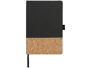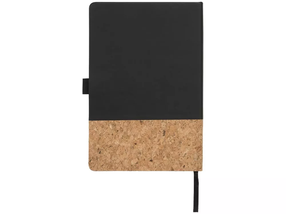 Блокнот Evora формата A5 из пробки и термополиуретана. Стильный блокнот формата A5 с твердой обложкой из искусственной кожи и пробки. Цветная эластичная застежка, лента-закладка, 80 листов линованной бумаги (80 г/м²) кремового цвета и расширяемый карман сзади для небольших заметок. Пробка и ПУ.