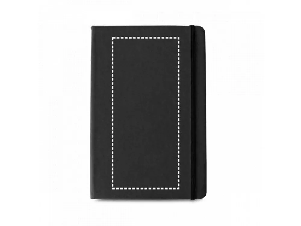 Блокнот формата A5, с 160 страницами без линовки, с твердой обложкой из искусственной кожи. Вид нанесения, рекомендуемый поставщиком: трансфер, трафаретная печать, уф- печать