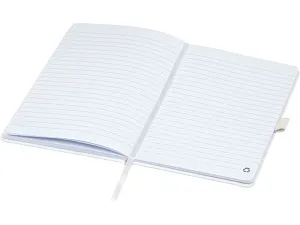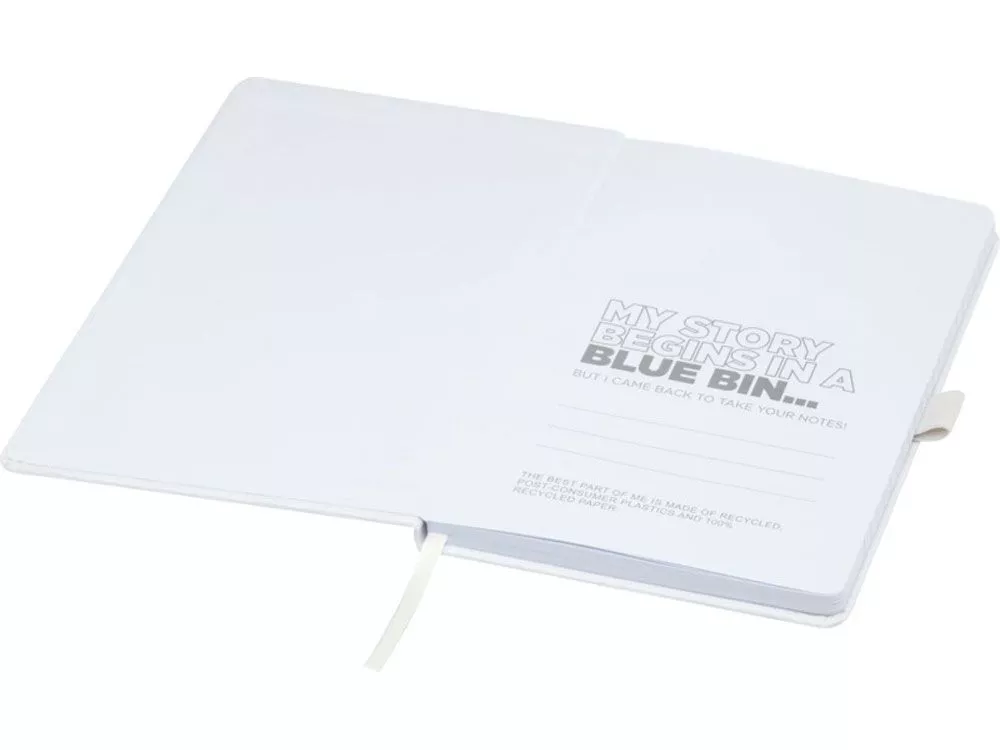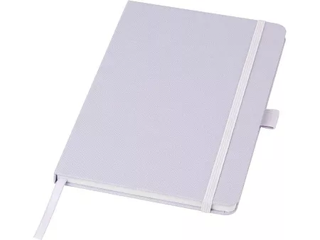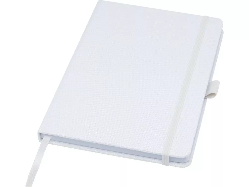 Блокнот формата А5 с обложкой из переработанного ПЭТ. Содержит 80 листов в линию плотностью 70 г/м², изготовленных из переработанной бумаги, с петлей для ручки и лентой-закладкой. Может быть дополнен шариковой ручкой Honua 107757 из переработанного ПЭТ. Переработанный PET пластик.