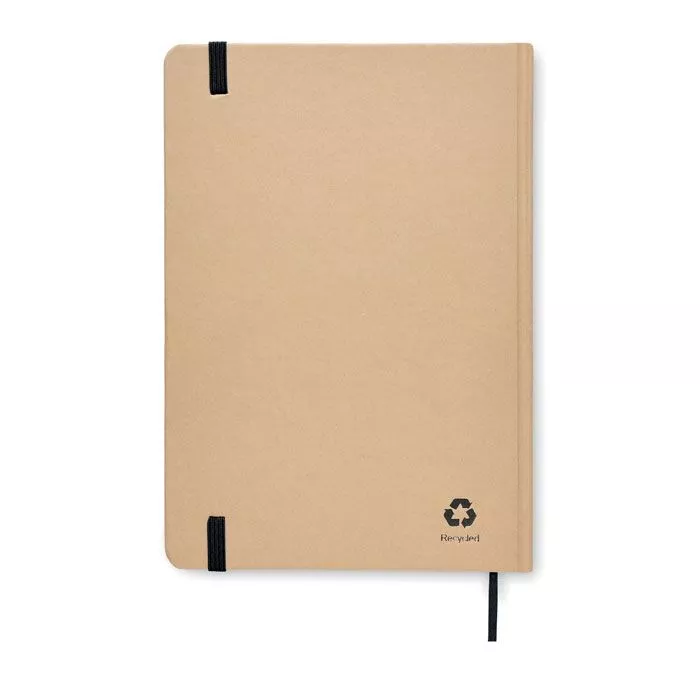 Блокнот формата A5 с твердой обложкой из переработанного картона. В переплете. 160 клетчатых страниц из переработанного картона (80 листов). Эластичный хлястик, ленточка-закладка.