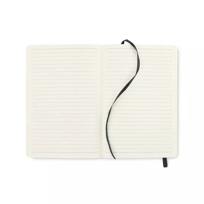 Блокнот формата А5 с мягкой обложкой из переработанного полиуретана. В переплете. 160 линованных страниц (80 листов). Эластичный ремешок и ленточная закладка. Расширяемый внутренний карман на задней стенке.