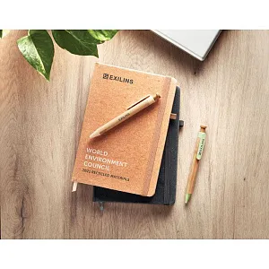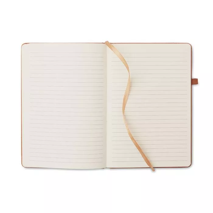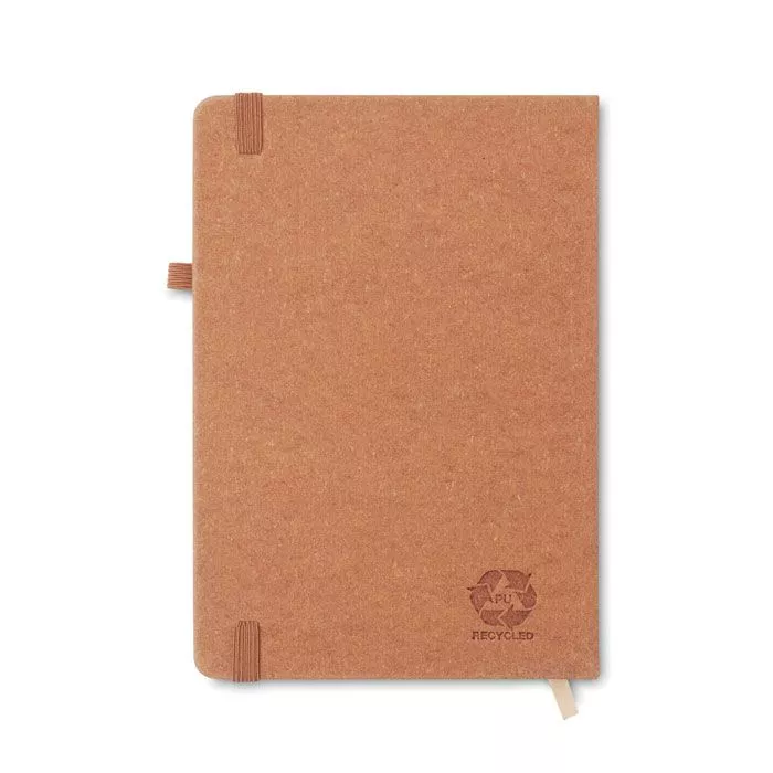 Блокнот формата A5 с обложкой из переработанного полиуретана и 80 линованными страницами. Блокнот на резинке.
