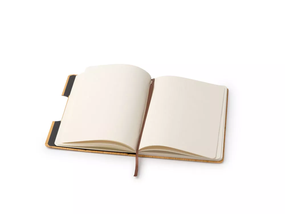 Блокнот формата А5 с жесткой обложкой с эффектом бамбука и функцией подставки. Закладка и 80 простых листов.