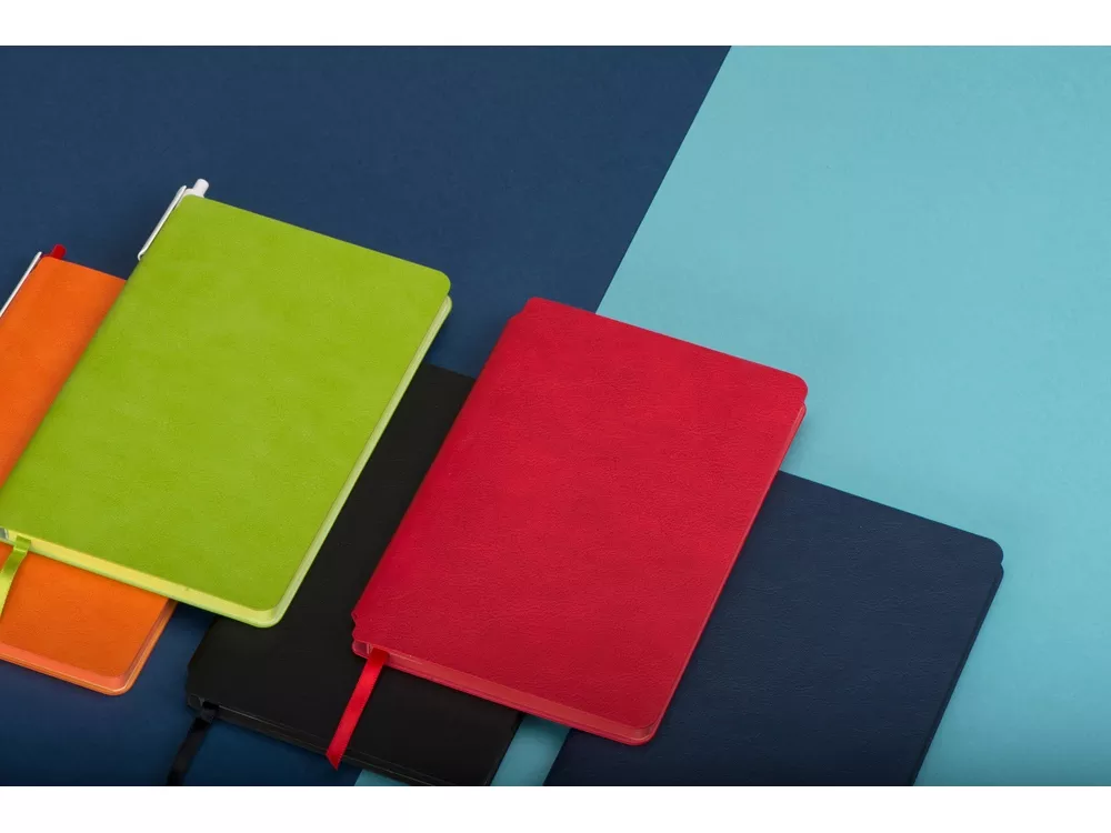 Блокнот Notepeno от бренда Lettertone - это универсальный бизнес-сувенир высочайшего качества. Он представлен в универсальном формате А5 и отлично подойдет для любого мероприятия или рекламной кампании. Основные характеристики: Обложка из искусственной кожи имеет зернистую структуру и скругленные углы. В блокноте 160 линованных перфорированных страниц кремового цвета с плотностью 80 г/м2. Последние 8 страниц представлены следующим образом: 2 страницы в линейку, в клетку, в точку, пустые и последняя страница содержит линейку для измерений на 18 см. Срез блока и ляссе тонированы в цвет обложки. В обложке блокнота есть удобное отверстие под вставку ручки.