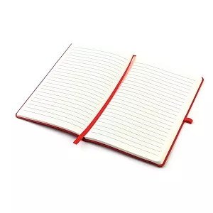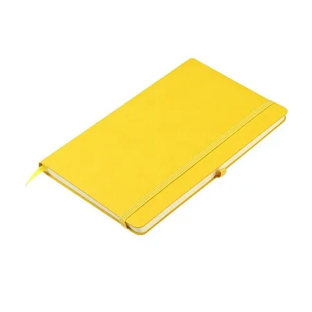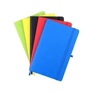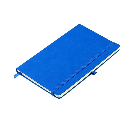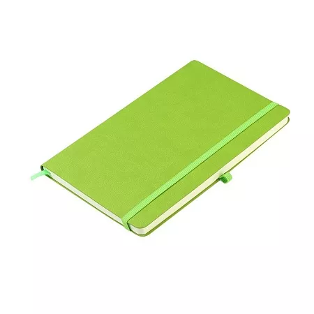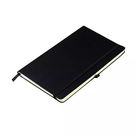 Блокнот формата А5 с мягким покрытием из PU-материала с имитацией рисунка кожи, с эластичной застежкой и текстильной закладкой, наличие петли для ручки в цвет блокнота, 192 страницы, плотность 70г/м, страницы с черными линиями.