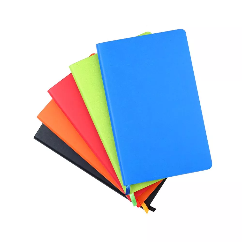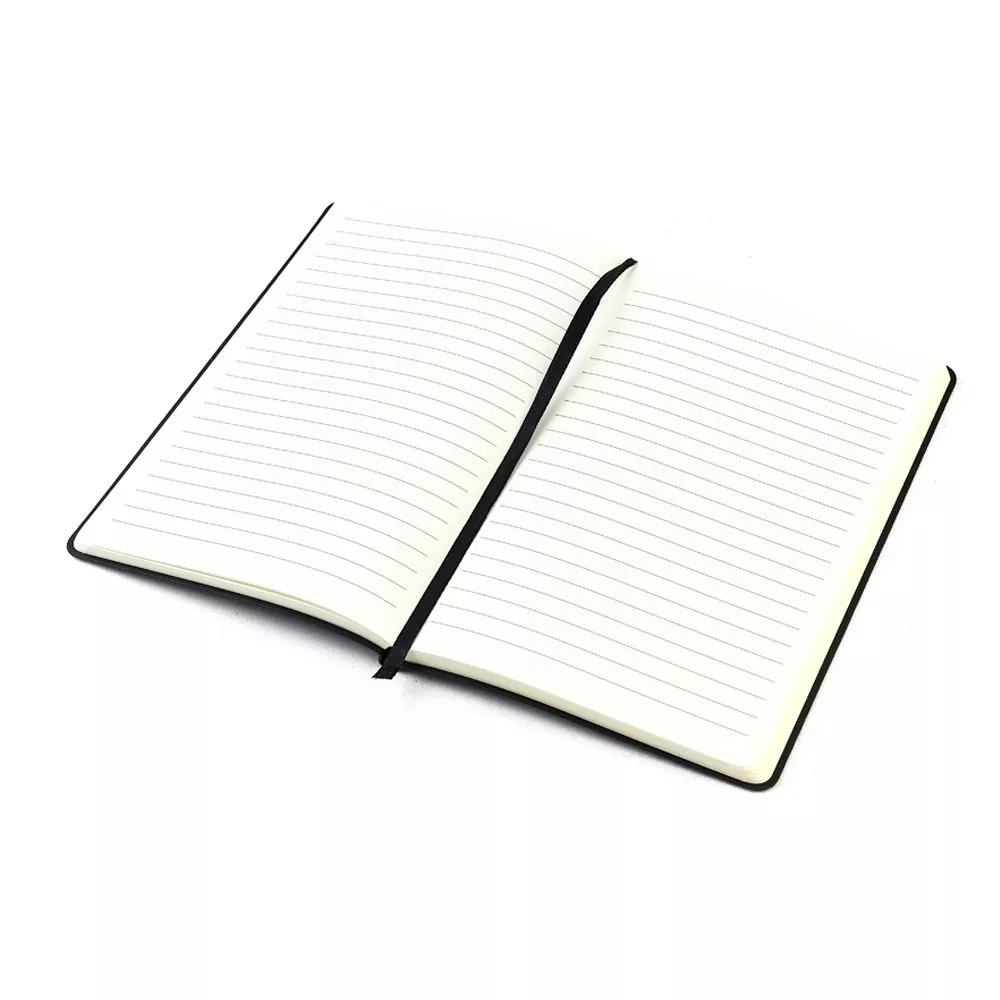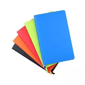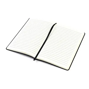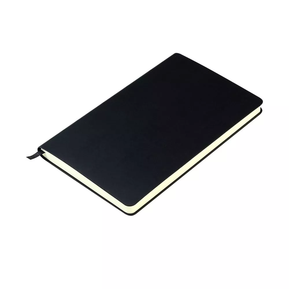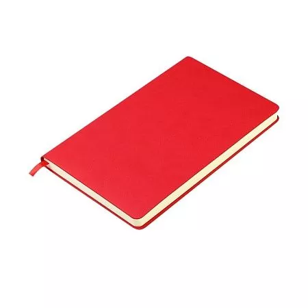 Блокнот формата А5 с мягким покрытием из PU-материала с имитацией рисунка кожи, с текстильной закладкой в цвет блокнота, 256 страниц, плотность 70г/м, страницы с черными линиями.