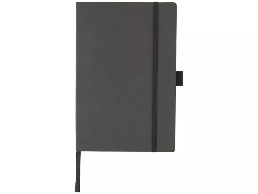 Блокнот Revello. Мягкий на ощупь, гибкий блокнот (размер А5 для ориентации) со встроенной эластичной застежкой, закладкой, петелькой для ручки и кармашка для документов на внутреннем форзаце сзади. 80 листов кремовой линованной бумаги (80г/м2). Упакован в черную коробку-рукав. Кожа ПУ.