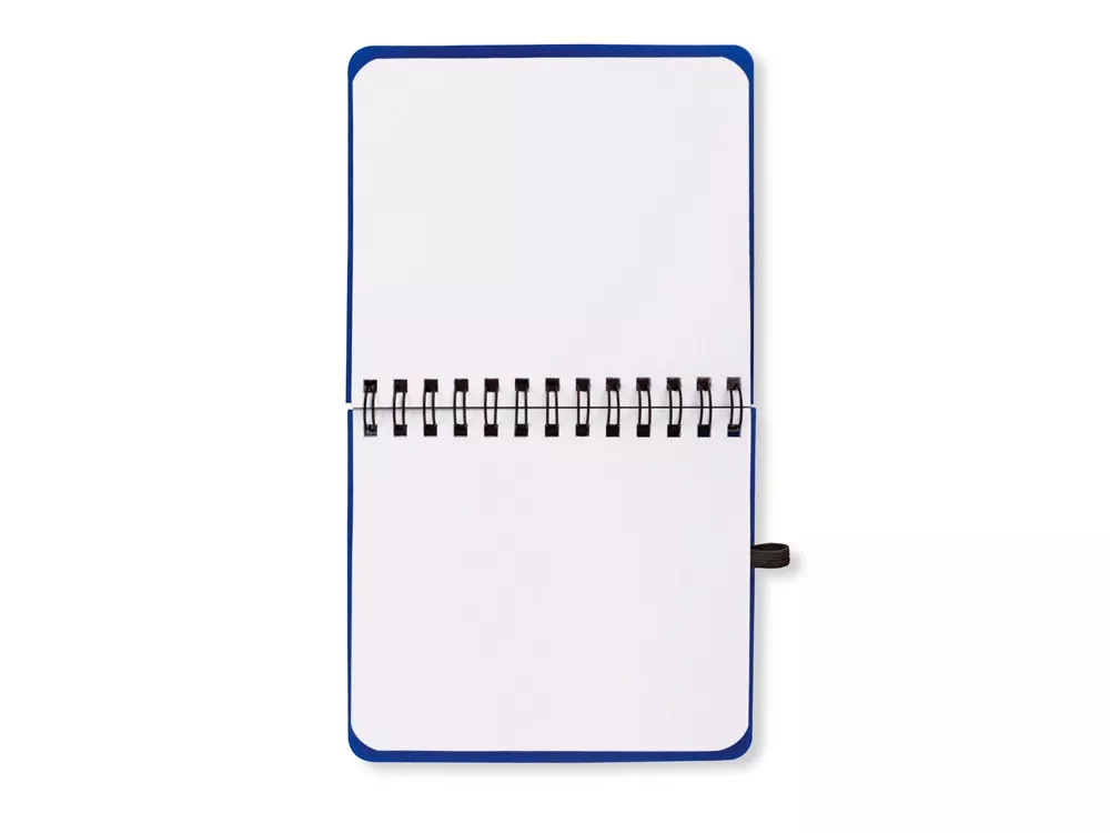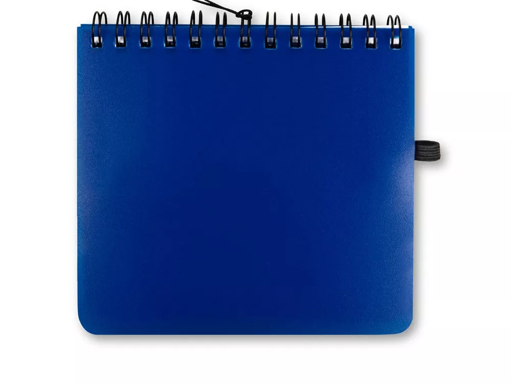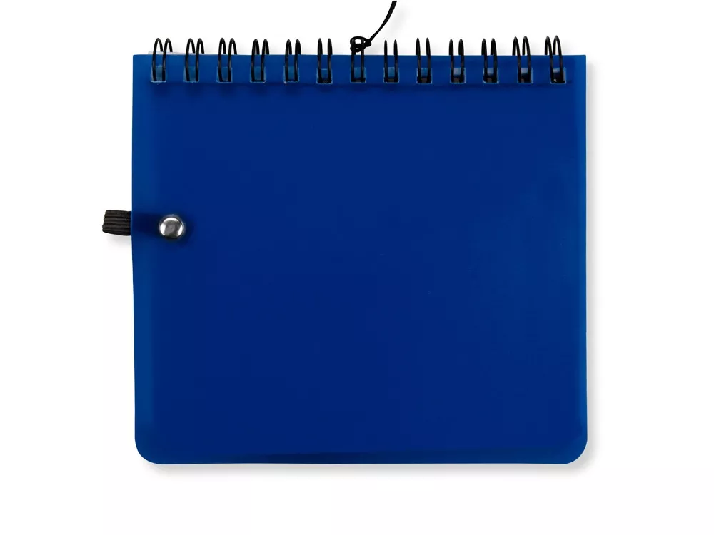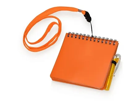 Яркий блокнот с шариковой ручкой можно носить на шее благодаря специальному ремешку. Отличный промо-сувенир, на обложку которого можно нанести логотип.