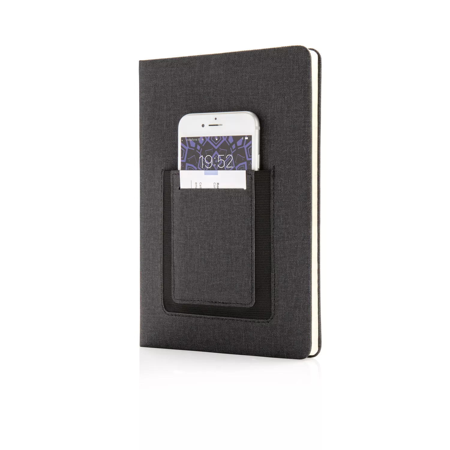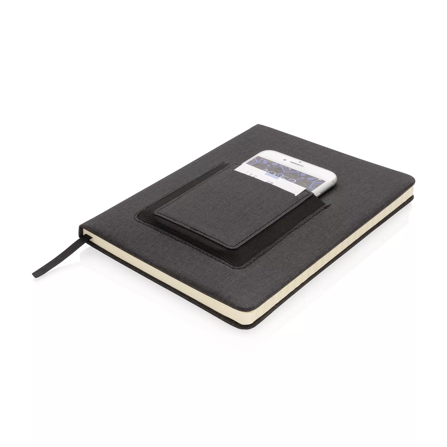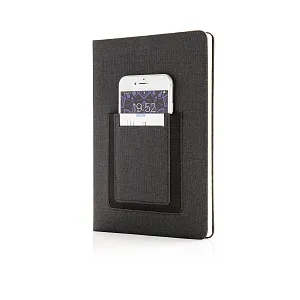 Удобный блокнот Deluxe формата А5 с кармашком для телефона, чехлом для карты и лентой-закладкой. 80 листов/160 страниц плотностью 78 г/ м2. Листы кремового оттенка.