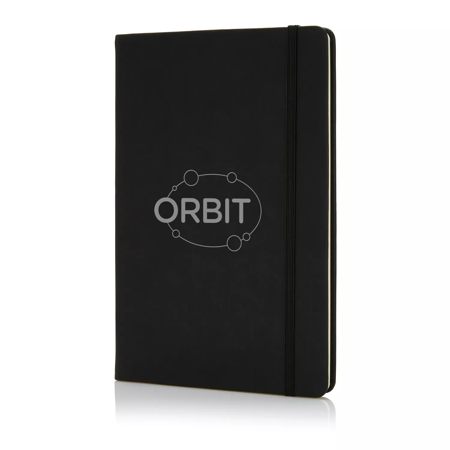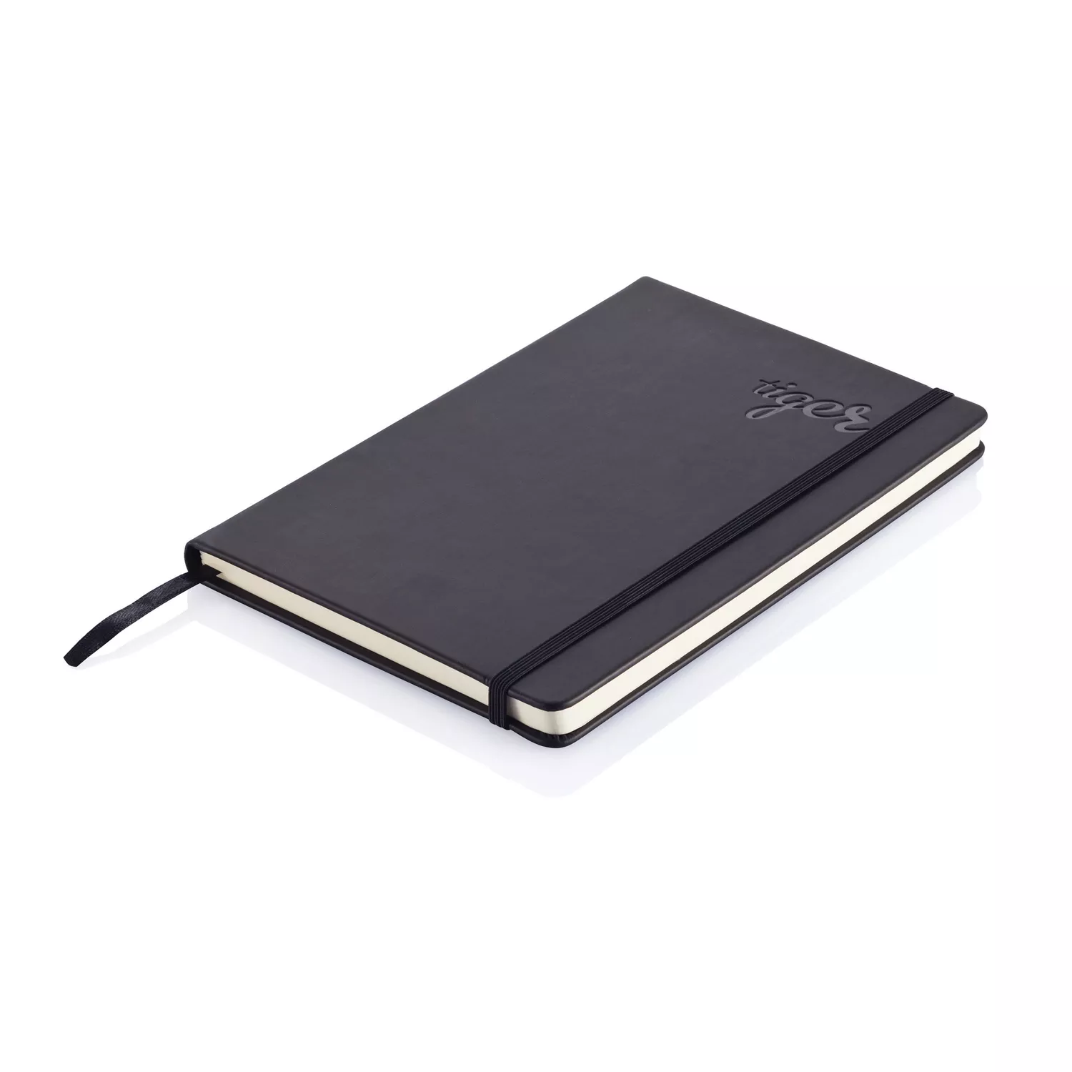 Блокнот формата A5 в твердой обложке из полиуретана. 160 страниц плотностью 80 г/м2. Идеально подходит для тиснения логотипа.
