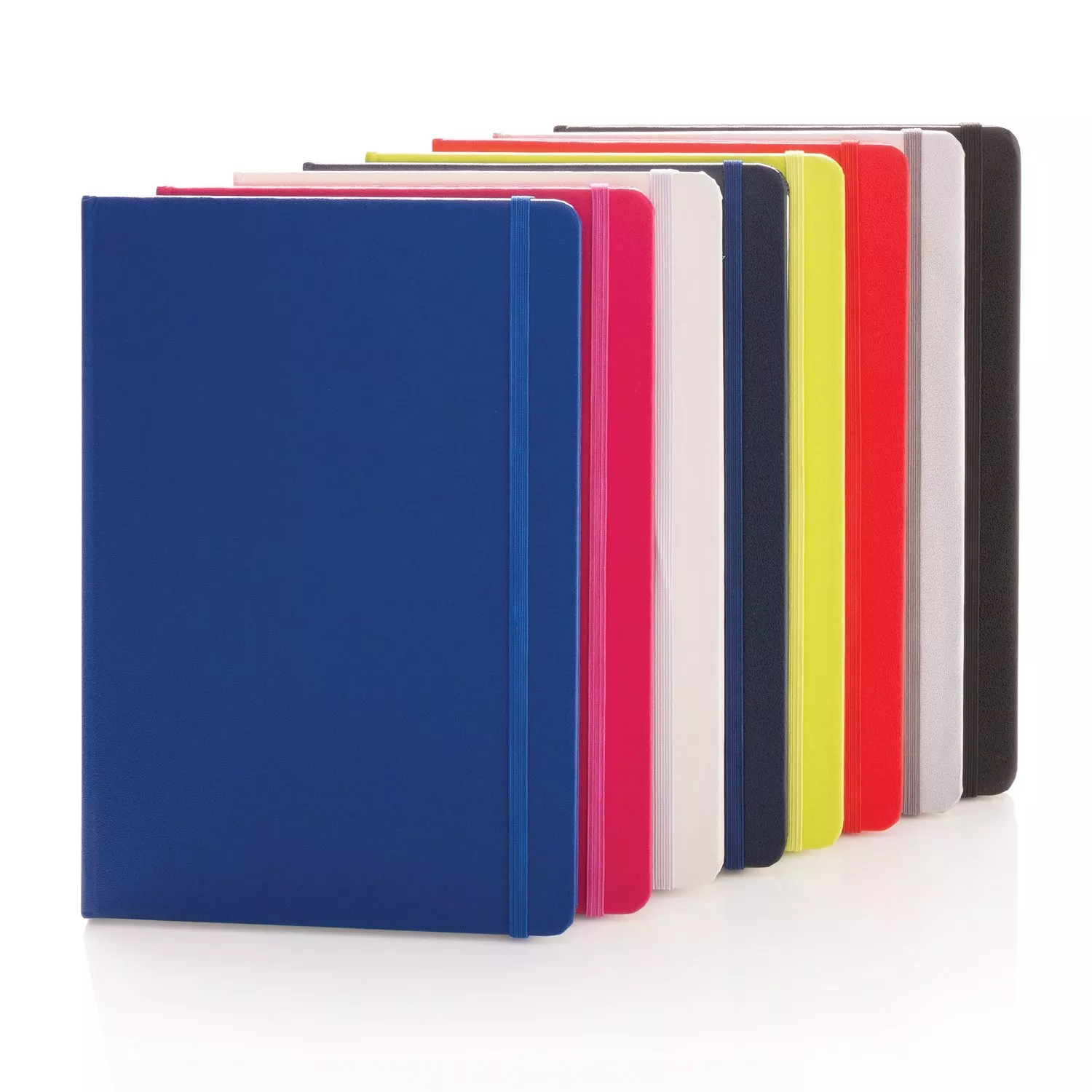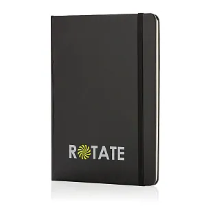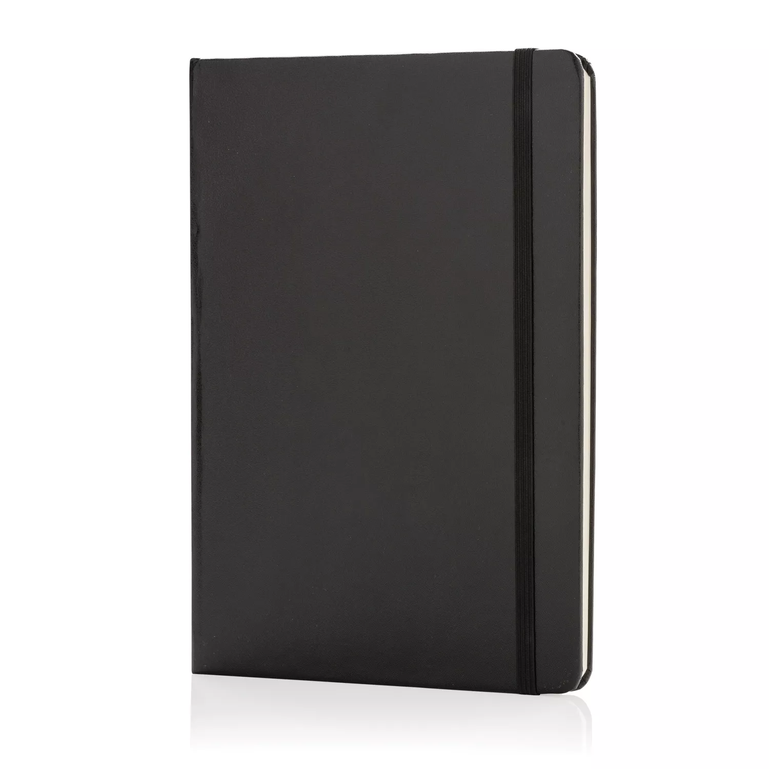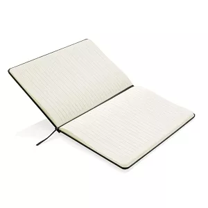 Блокнот для записей Basic в твердой обложке формата А5 на резинке с ляссе. 72 страницы, линованная бумага кремового цвета, плотностью 70 г/м2.