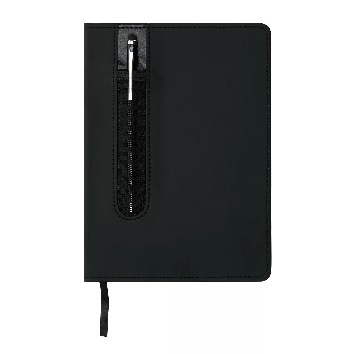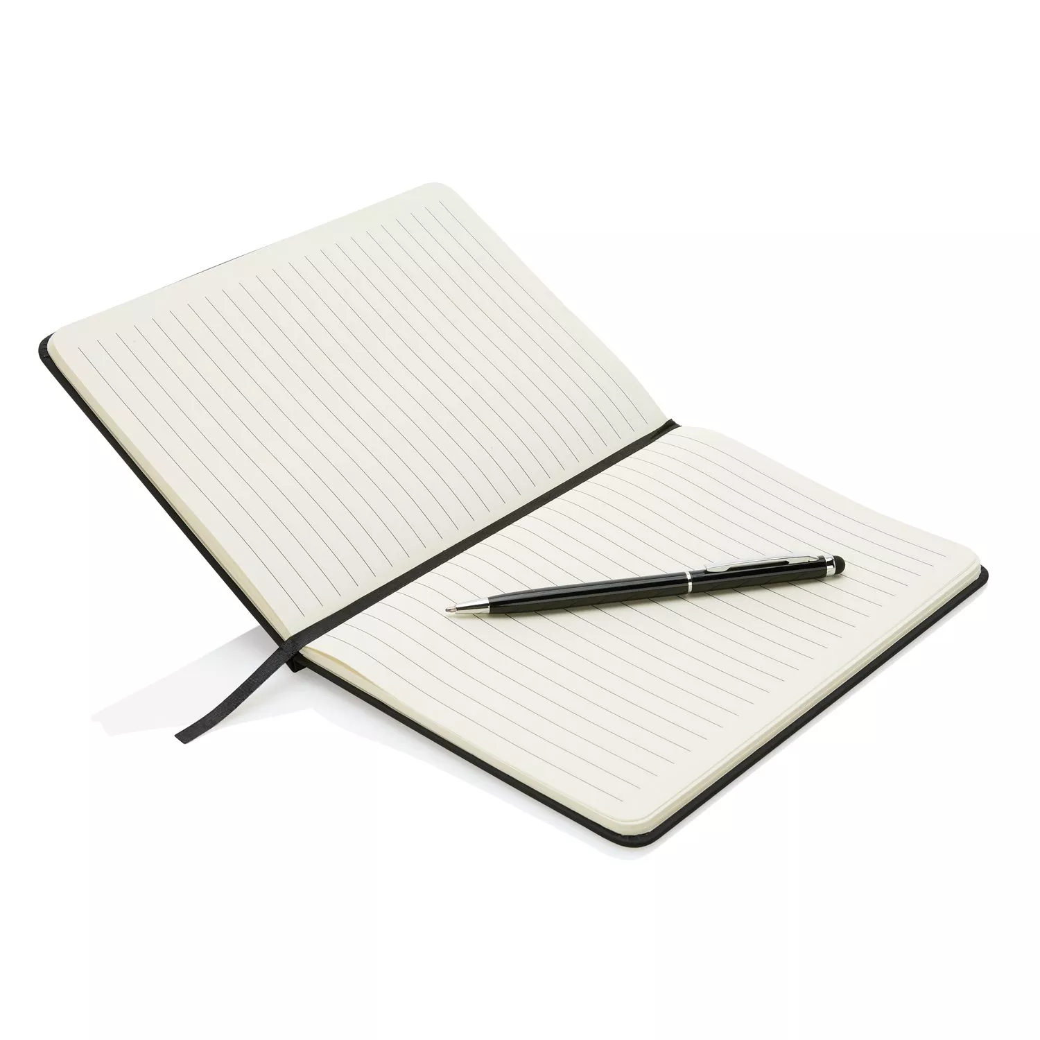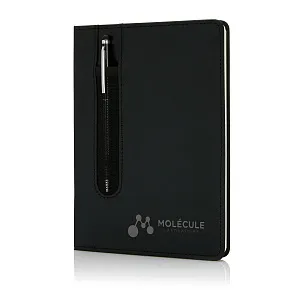 Блокнот для записей Deluxe формата A5 с кармашком для ручки и ручкой-стилус в комплекте. Упакован в подарочную коробку. Блок формата А5 на 80 страниц, плотность бумаги 80 г/м2.