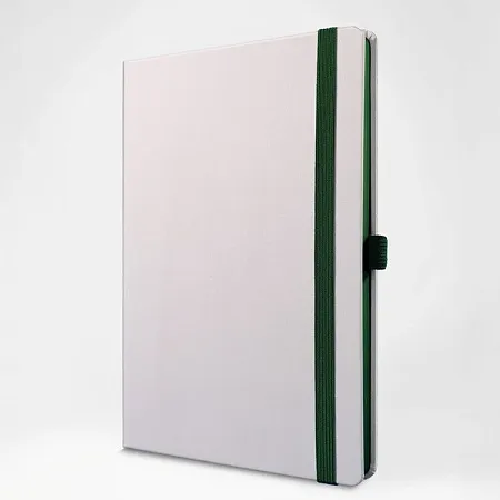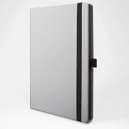 Записная книга формат 14,5х21 см в линейку 256 страниц, кремовая бумага 70 г сертифицирована FSC. Дополнительно имеются страницы в точку, в клетку, для систематизации проектов, а также листы без разметки с перфорацией. Печать в 1+1 цвет, все страницы пронумерованы. Шитый блок Форцазы из черной дизайнерской бумаги 140 гр FSC. Белая обложка из высококачественного кожзама от ведущего итальянского производителя. Ляссе в тон обложки. Резинка 10 мм в тон обложки.