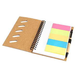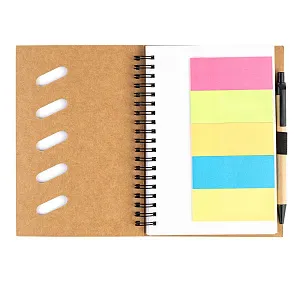 Блокнот "Гарольд" включает в себя: - 70 листов, плотностью 70 г/м2. - 5 блоков стикеров (по 25 шт. каждого цвета) - шариковая ручка с синими чернилами.