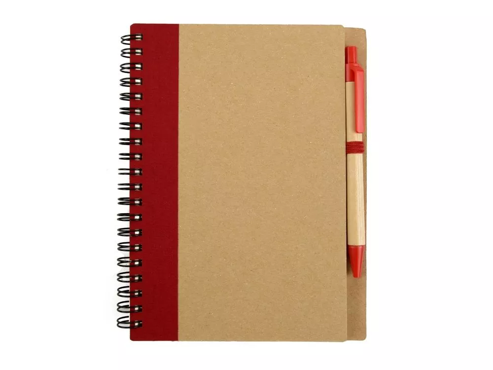 Блокнот с 60 листами переработанной бумаги 70 г/м2 и картонной ручкой в цвет блокнота.