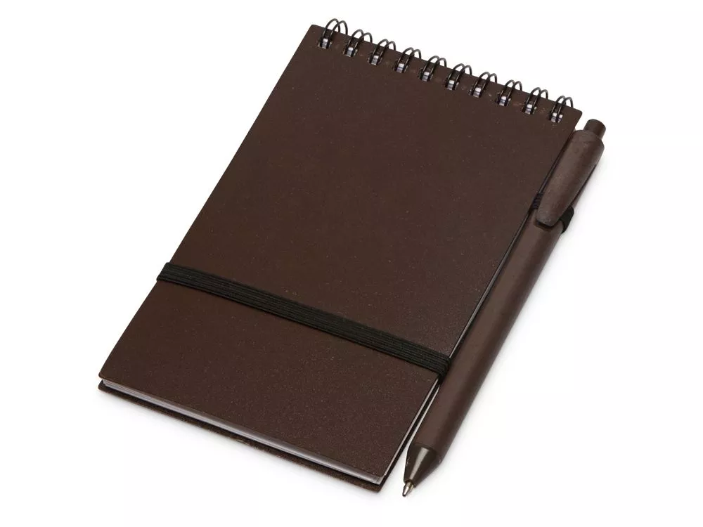 Оригинальный блокнот с обложкой из пластика и кофейного жмыха, а также блоком из переработанной бумаги. Петля для ручки и горизонтальная резинка расширяют функциональность. Тампопечать (1 цвет (цветные изделия)) на данный товар осуществляется бесплатно. Оплачивается только настройка оборудования в размере 3000 рублей на весь тираж.