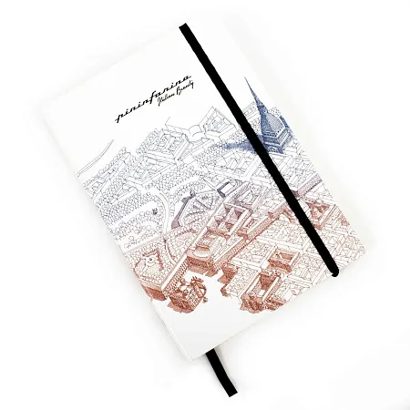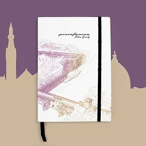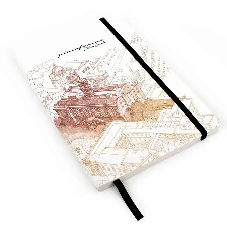 Тетрадь с листами из каменной бумаги Флоренция из специальной коллекции Italian Beauty дизайнеров Pininfarina в сотрудничестве с Francesco Corni Foundation, посвященной красоте Италии. Франческо Корни - выдающийся дизайнер из Модены, посвятивший свою жизнь популяризации истории и архитектуры. Используя трехмерное перспективное видение, он изучает наиболее значимые здания каждого города, выбирает наилучшую точку обзора, чтобы подчеркнуть их особенности, и прорисовывает детали в древней технике калиграфии. Для Флоренции дизайнер выбрал центром композиции Corridoio Vasariano, идущий от Palazzo Vecchio до Palazzo Pitti, и фиолетовый цвет. Белая мягкая обложка фиксируется черной резинкой. Тетрадь размером А5 (14х21 см) содержит 64 листа в линейку. Листы сделаны из каменной бумаги, экологической альтернативы обычной целлюлозной бумаге, которая не требует вырубки деревьев, использования воды и агрессивных химических веществ, тем самым защищая окружающую среду. Она состоит из 80% камня (карбоната кальция) и на 20% из связующего его нетоксичного полиэтилена высокой плотности (HDPE). Это бумага нового поколения с уникальными характеристиками. Каменная бумага на 100% водоотталкивающая, ее можно мыть. Жидкости, включая масло, не изменяют ее структуру, поскольку она не содержит древесных волокон, которые поглощают жидкости, в следствие чего традиционная бумага покрывается пятнами, деформируется и разрушается. Каменная бумага устойчива к разрыву, что также способствует ее долговечности. Она имеет приятный бархатистый эффект и не отражает свет. Плотность бумаги 140 гр/м2. Ляссе черного цвета. Сделана в Италии.