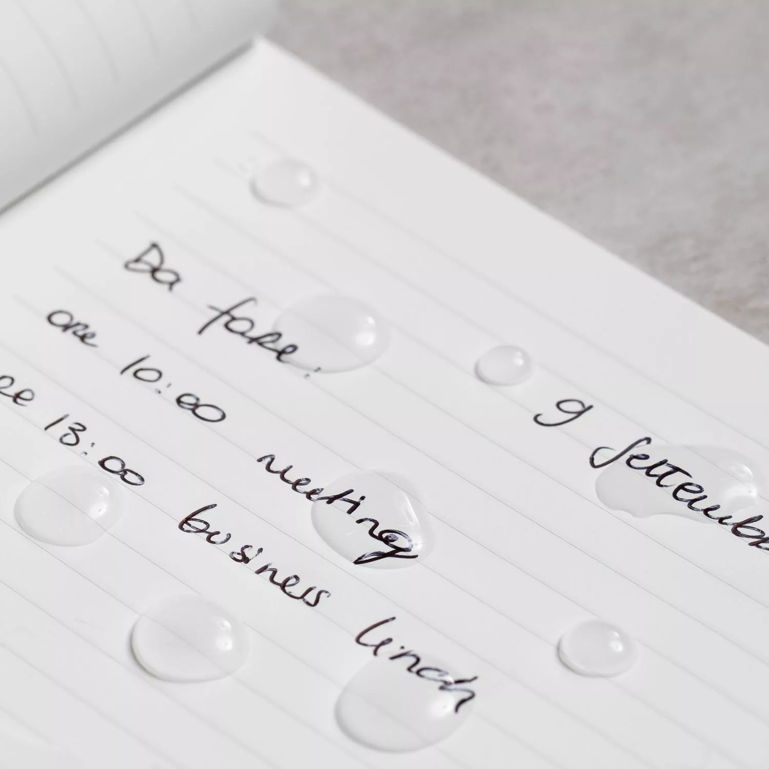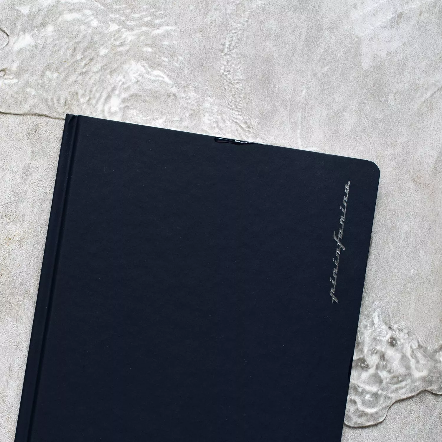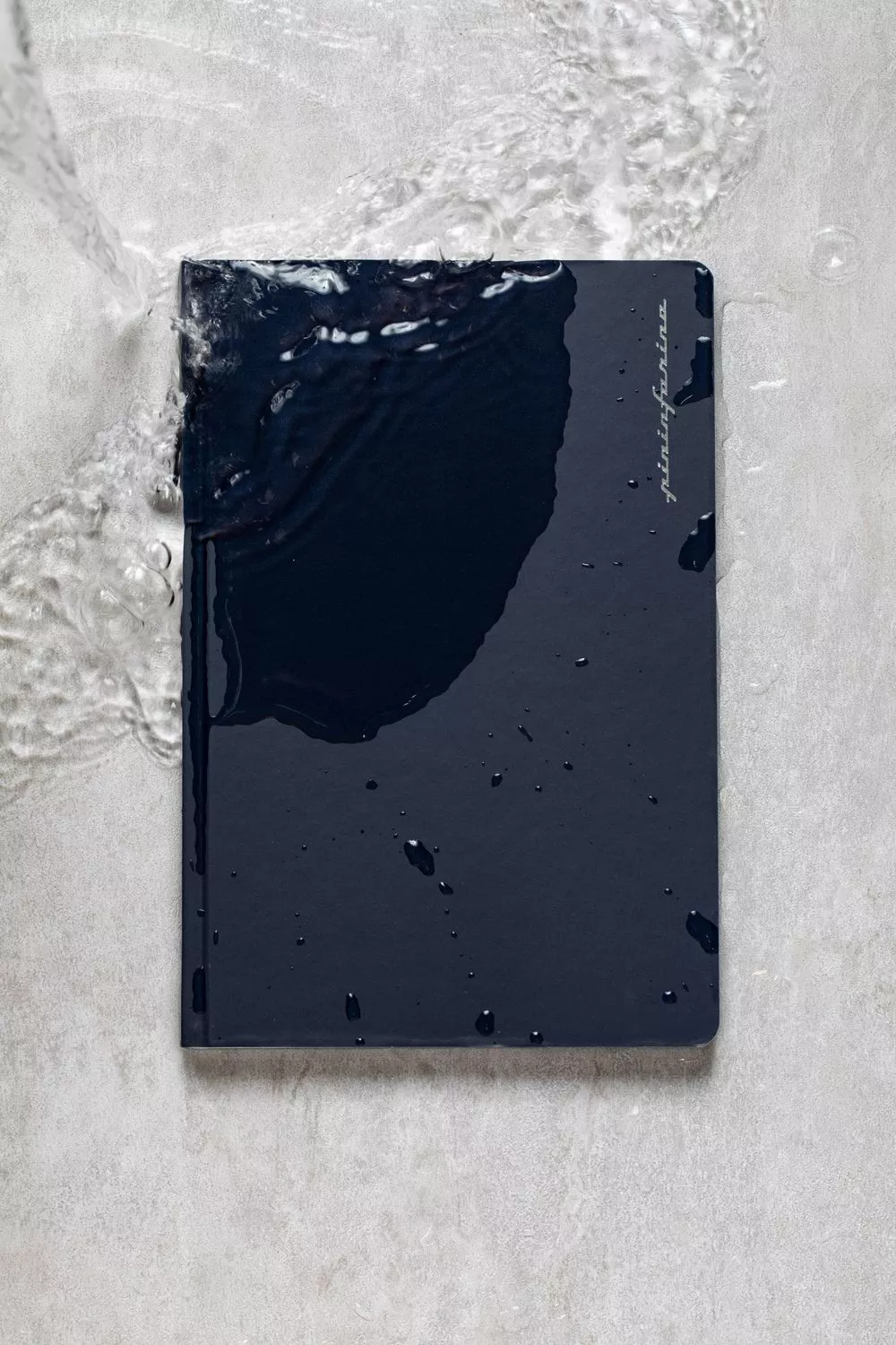 Тетрадь с листами из каменной бумаги. Дизайнеры Pininfarina создали элегантный минималистский дизайн для своего идеального дополнения к линейке вечных ручек Pininfarina Segno, так как именно на каменной бумаге они оставляют очень яркий след. Темно-синяя твердая обложка с покрытием soft-touch фиксируется резинкой того же цвета. Тетрадь размером А5 (14х21 см) содержит 64 листа в линейку. Листы сделаны из каменной бумаги, экологической альтернативы обычной целлюлозной бумаге, которая не требует вырубки деревьев, использования воды и агрессивных химических веществ, тем самым защищая окружающую среду. Она состоит из 80% камня (карбоната кальция) и на 20% из связующего его нетоксичного полиэтилена высокой плотности (HDPE). Это бумага нового поколения с уникальными характеристиками. Каменная бумага на 100% водоотталкивающая, ее можно мыть. Жидкости, включая масло, не изменяют ее структуру, поскольку она не содержит древесных волокон, которые поглощают жидкости, в следствие чего традиционная бумага покрывается пятнами, деформируется и разрушается. Каменная бумага устойчива к разрыву, что также способствует ее долговечности. Она имеет приятный бархатистый эффект и не отражает свет. Плотность бумаги 140 гр/м2. Сделана в Италии.