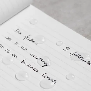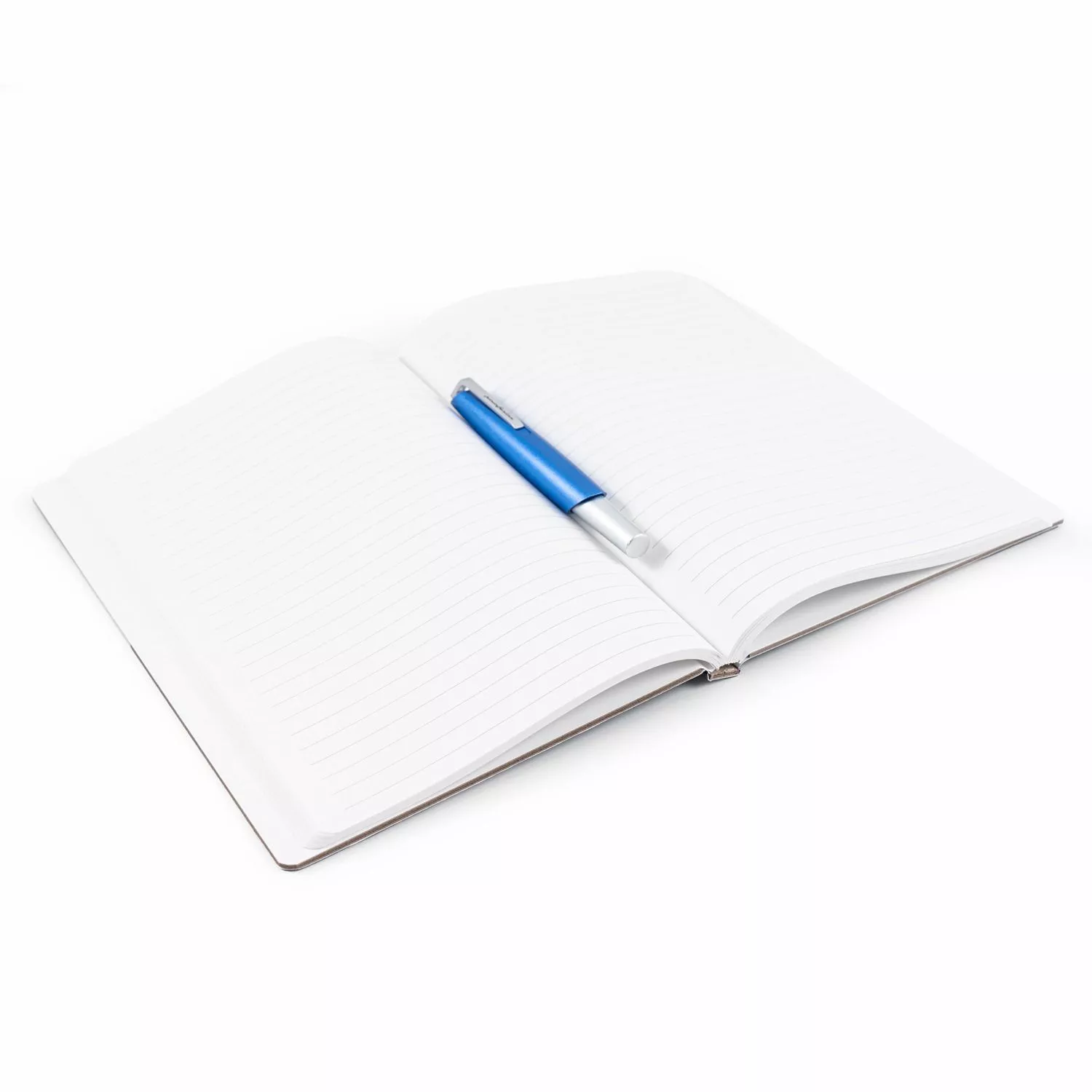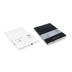 Тетрадь с листами из каменной бумаги. Дизайнеры Pininfarina создали элегантный дизайн для своего идеального дополнения к линейке вечных ручек Pininfarina Segno, так как именно на каменной бумаге они оставляют очень яркий след. Тетрадь размером А5 (14х21 см) в черной мягкой обложке с принтом Pininfarina и черным ляссе содержит 64 листа в линейку. Листы сделаны из каменной бумаги, экологической альтернативы обычной целлюлозной бумаге, которая не требует вырубки деревьев, использования воды и агрессивных химических веществ, тем самым защищая окружающую среду. Она состоит из 80% камня (карбоната кальция) и на 20% из связующего его нетоксичного полиэтилена высокой плотности (HDPE). Это бумага нового поколения с уникальными характеристиками. Каменная бумага на 100% водоотталкивающая, ее можно мыть. Жидкости, включая масло, не изменяют ее структуру, поскольку она не содержит древесных волокон, которые поглощают жидкости, в следствие чего традиционная бумага покрывается пятнами, деформируется и разрушается. Каменная бумага устойчива к разрыву, что также способствует ее долговечности. Она имеет приятный бархатистый эффект и не отражает свет. Плотность бумаги 140 гр/м2. Сделана в Италии.