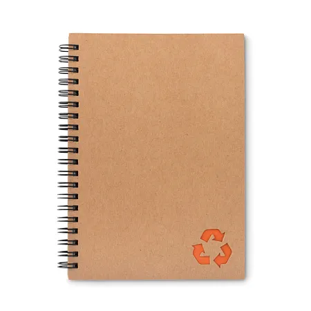 Блокнот на кольцах на 70 листов. Обложка из переработанного картона. Блок бумаги- это каменная бумага. Изготовлена из смеси натурального камня, карбоната кальция, известняка и полиэтилена высокой плотности.