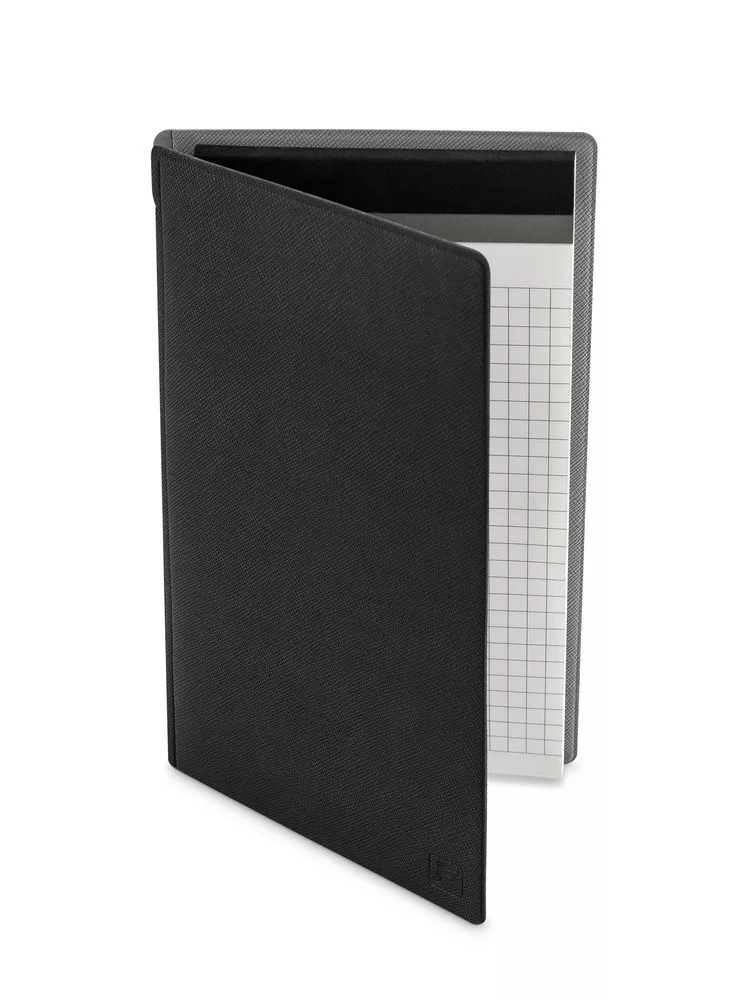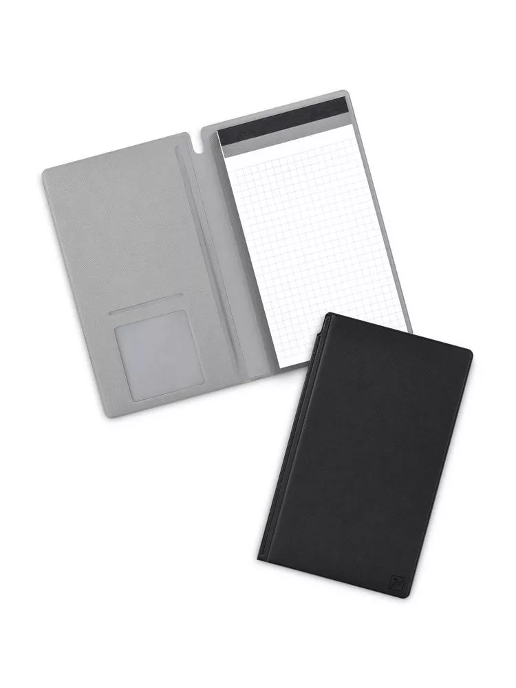 Блокнот-планшет в обложке-папке с карманом под визитку. Благодаря прочной обложке в блокнот удобно вносить быстрые заметки или конспекты на весу.