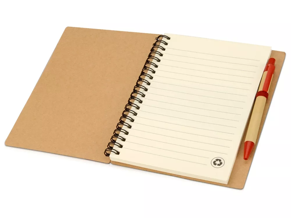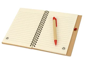 Блокнот Priestly с ручкой. Блокнот с 60 листами линованной бумаги вторичной переработки и ручкой под цвет блокнота. На обложку блокнота и ручку можно нанести яркий логотип.
