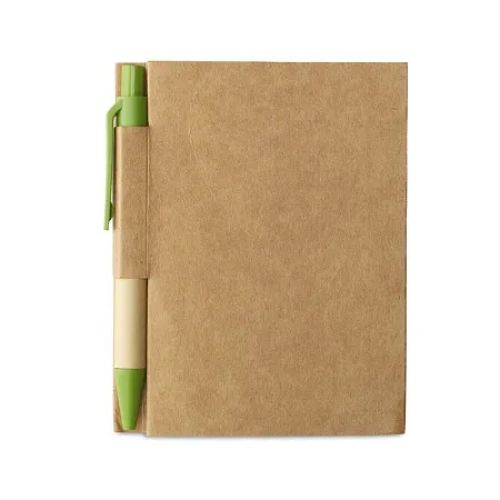 Блокнот для заметок на 80 листов и мини-ручка из биоперерабатываемого материала с синими чернилами.