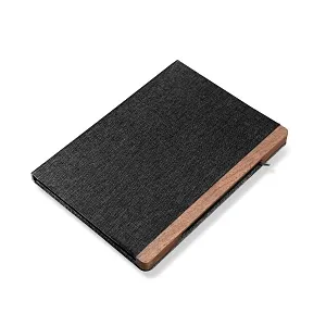 В блокноте 160 страниц в линейку кремовой бумаги плотностью 80 г/м2. Материал текстильной обложки изготовлен из переработанного (RPET) пластика. Ручка с синей пастой, стержень легко заменить.
